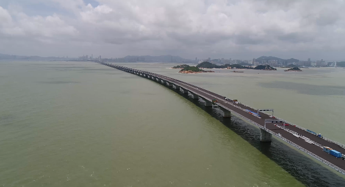 这座迄今为止世界上最长的跨海大桥,全长55公里,设计使用寿命120年,是中国建设史上里程最长、投资最多、施工难度最大的跨海桥梁。