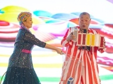 5月的这场演出,等到傍晚6点,李春来终于上场了。他套上了红白条纹的宽大演出服,化好两道弯细的眉,兜里揣着各式彩色气球,大喊:“你们好吗?”