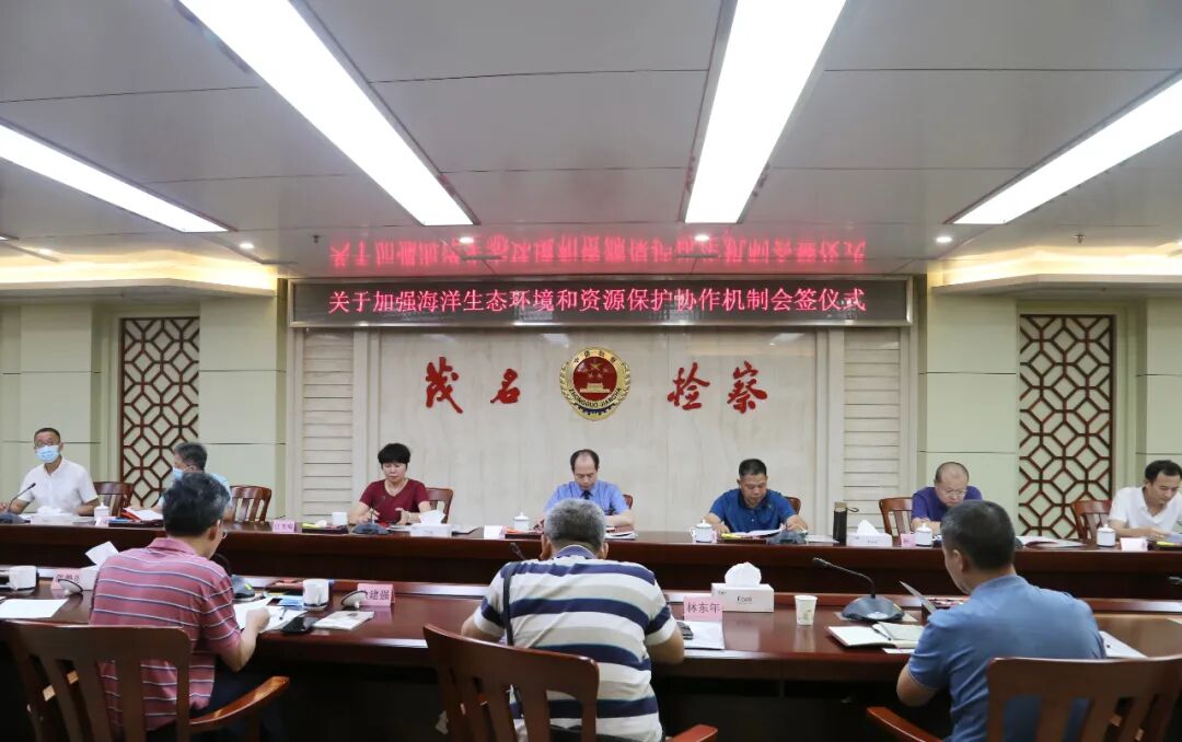 首先,茂名市检察院与茂名市生态环境局、茂名市自然资源局、茂名市农业农村局、茂名市交通运输局、茂名市林业局、茂名海事局联签《关于加强海洋生态环境和资源保护协作机制》。该机制构建起工作信息通报、线索移交、联合培训、联席会议等制度,使部门间协作衔接有序有效。