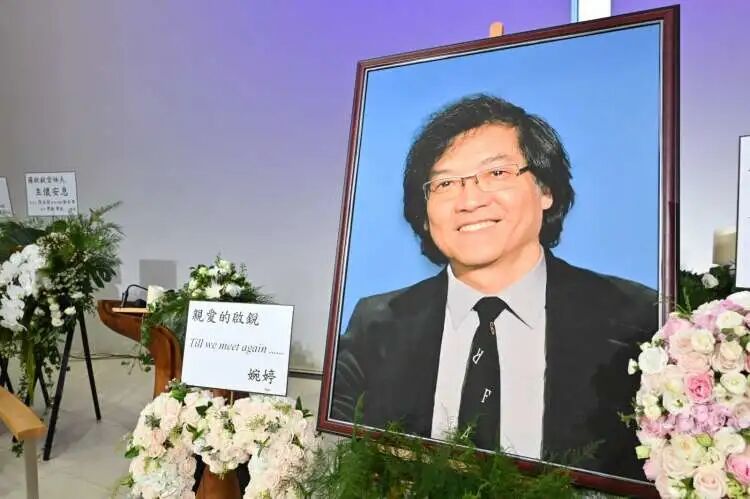 罗启锐导演的妻子张婉婷在花牌上写道:“亲爱的启锐,Till we meet again……”