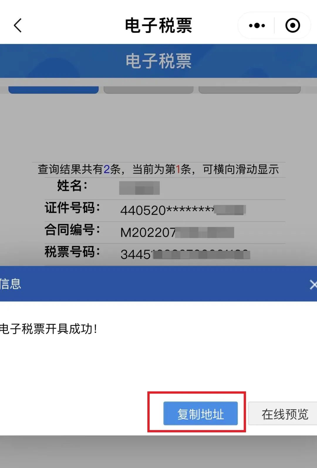 2查询到电子发票,点击“电子发票”,点击“复制地址”。