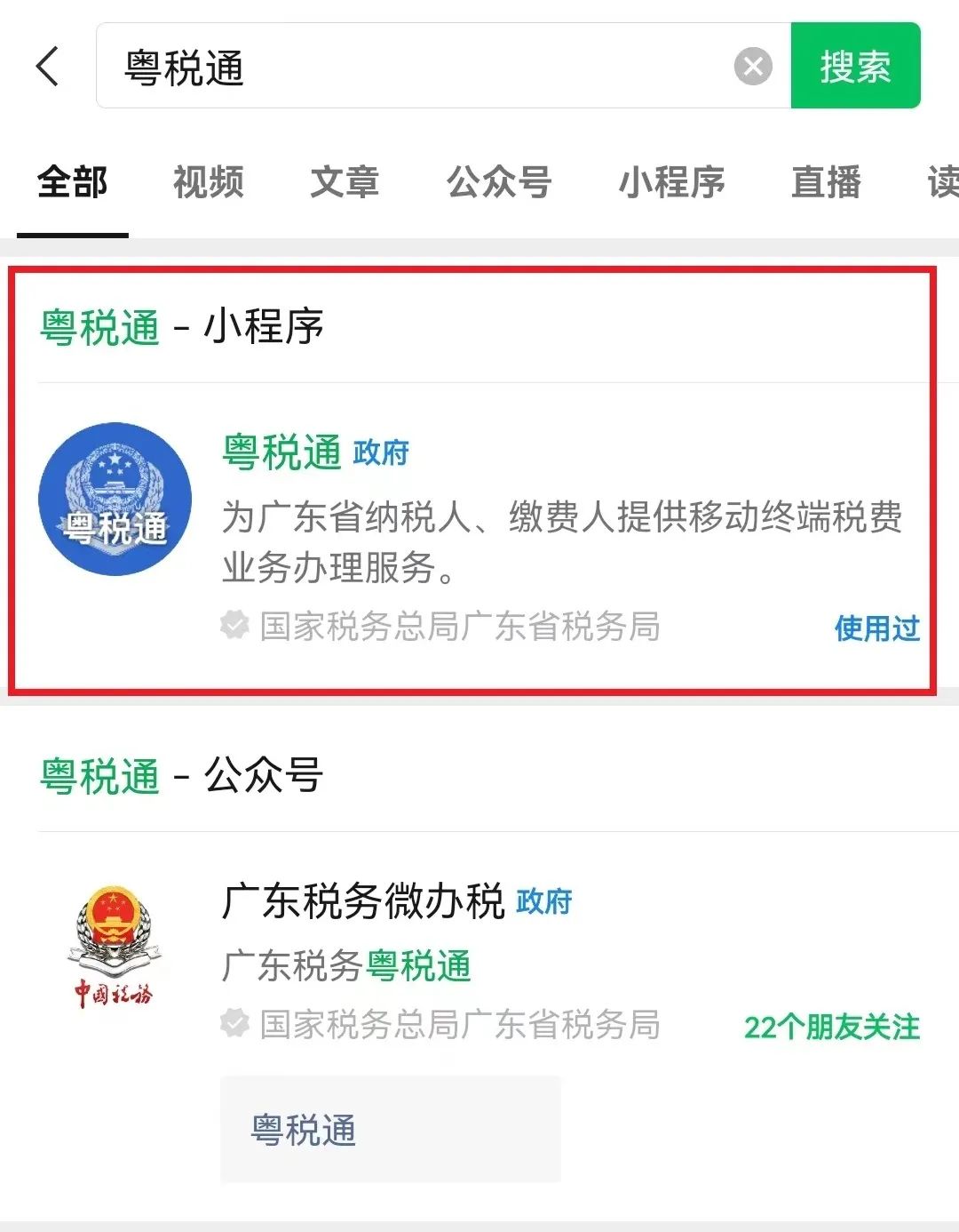 2微信搜索“粤税通”小程序,点击进入并实名登录。