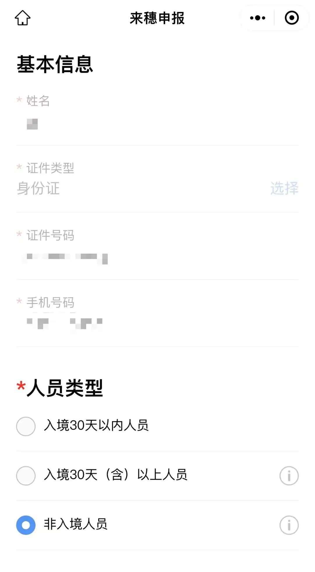 若有同行人,填报人员填写完本人信息后,选择“增加同行人”,并填写所有带“*”选项内容。