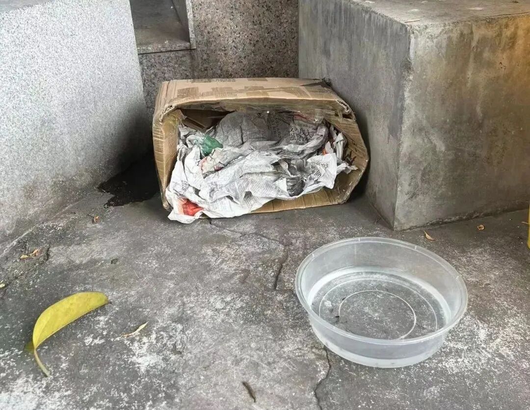 警员们找来纸箱和报纸,在雨棚下专门为小狗狗搭了一个“小家”。每天大家都轮流给它送去饭菜,帮它洗澡……