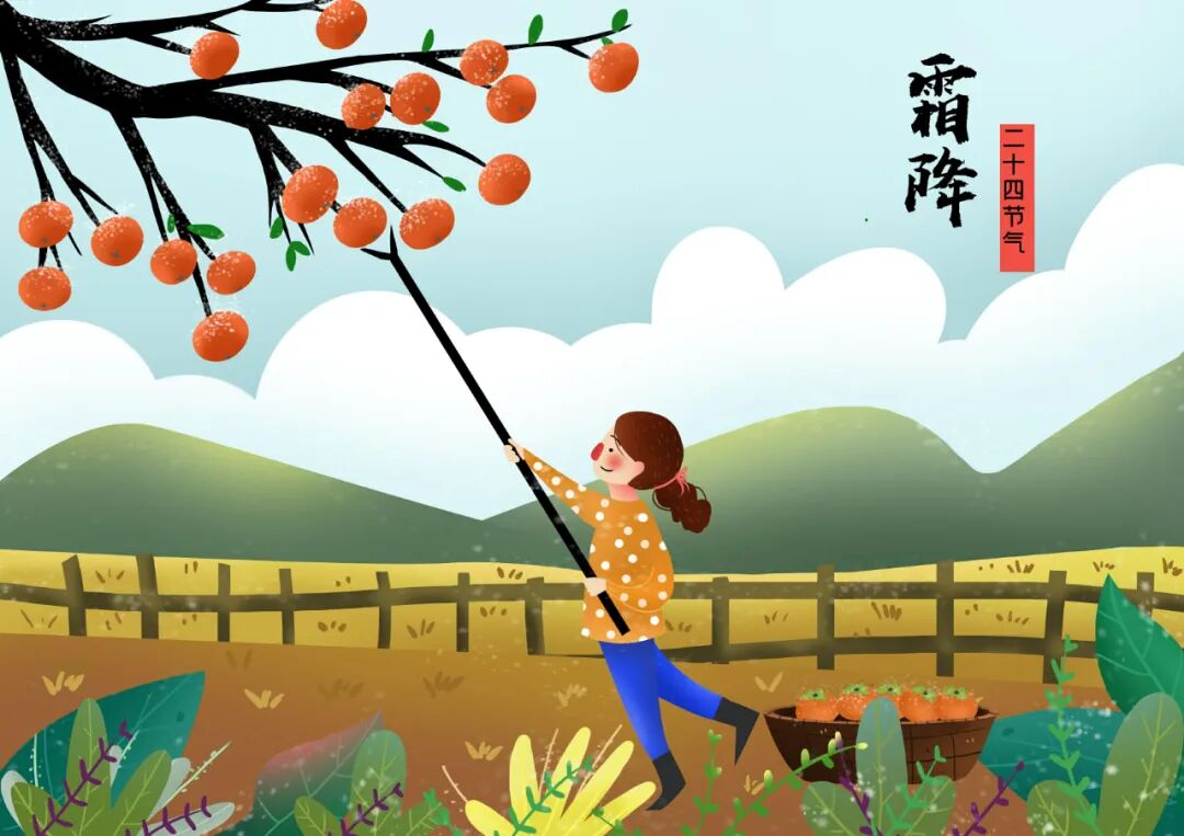 霜降,是二十四节气中的第十八个节气,也是秋季的最后一个节气。“柿子霜红满树鸦”,霜降前后,气温的温差骤然增大,柿子树上硕果累累,红彤彤金灿灿的柿子。无论是黄色还是红色,都有一番独特的韵味。