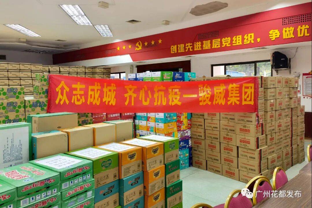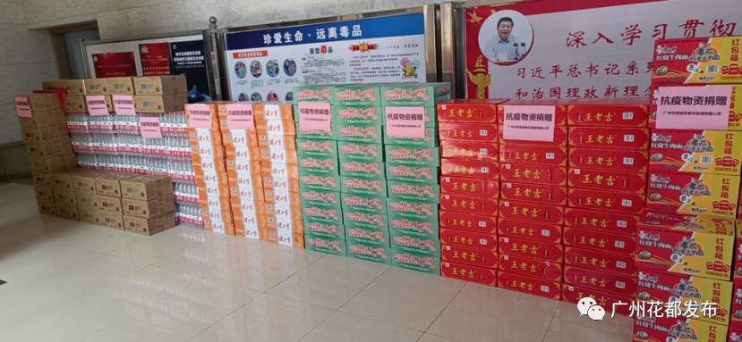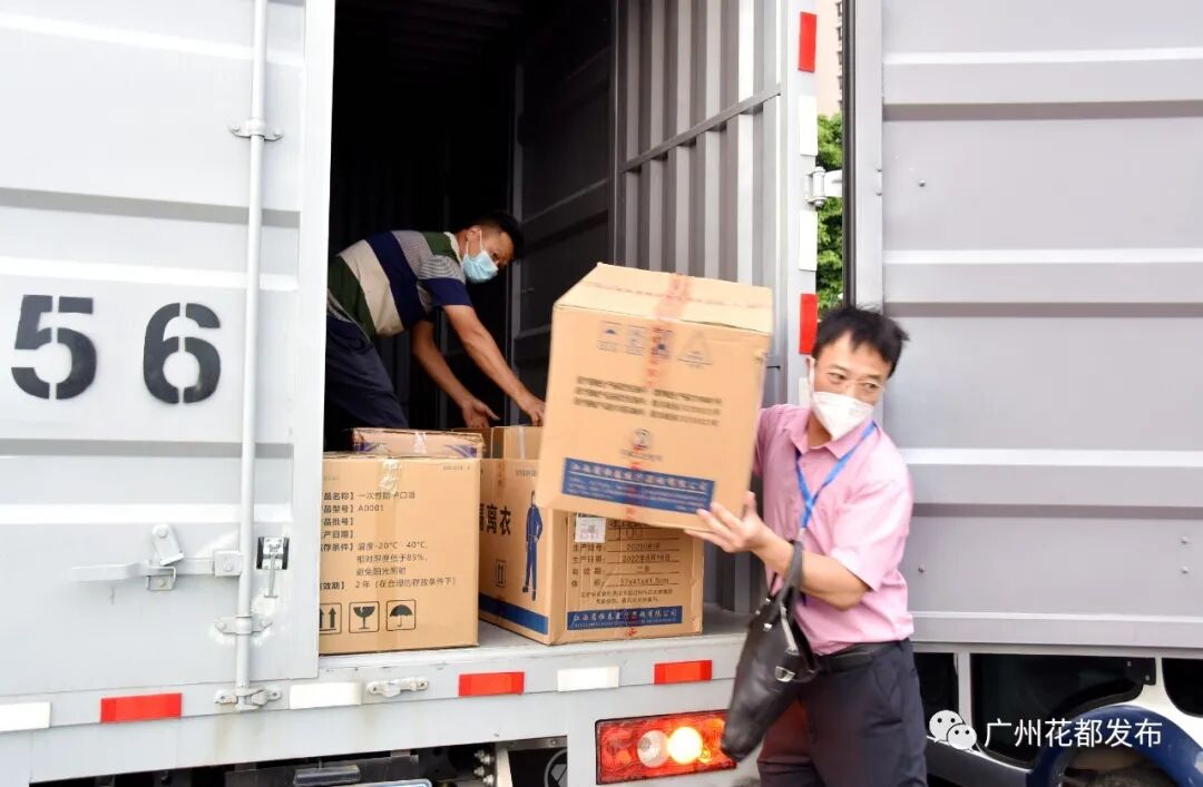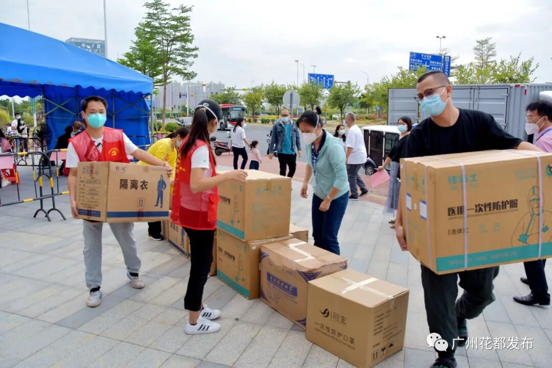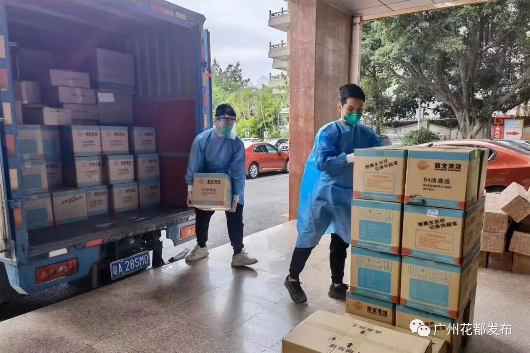 10 月 19 日,花都区化妆品行业协会会员企业向抗疫一线捐赠口罩、防护服、饮用水、方便面等防疫及生活物资。