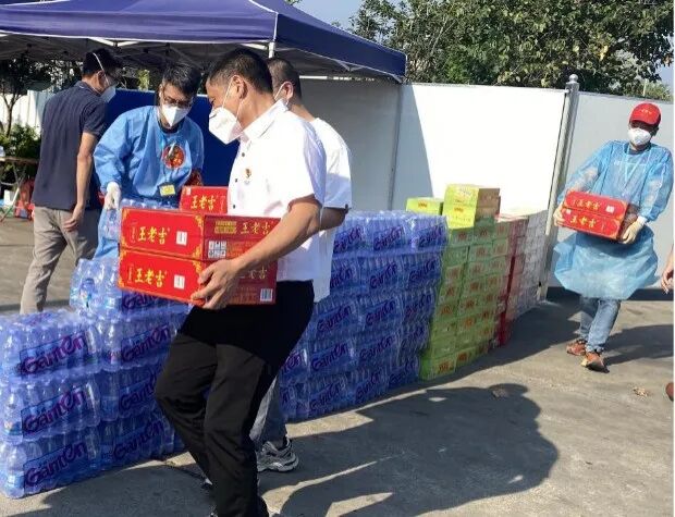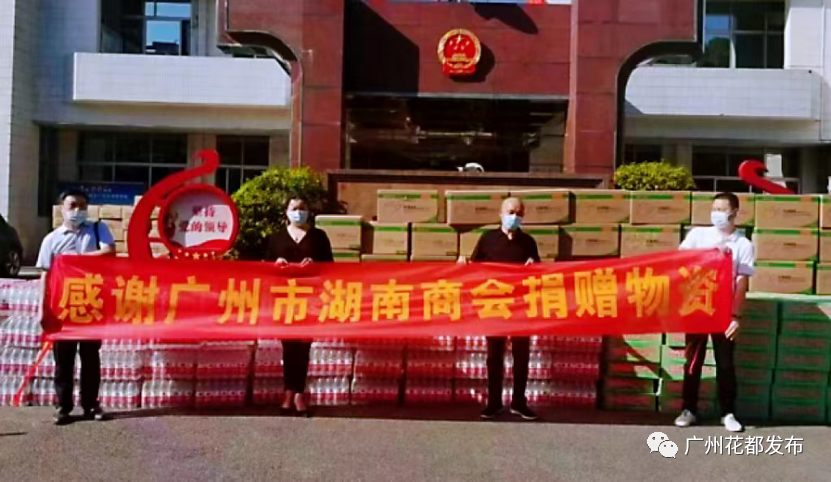 10月18-21日,广州市湖南商会党支部书记、会长陈建新组织会员企业捐赠喇叭652个、抗疫物资一批、食品一批、矿泉水300箱,一次性口罩15万个,护目镜3200副、方便面100箱、王老吉50箱、盒饭一批(价值2000元)。