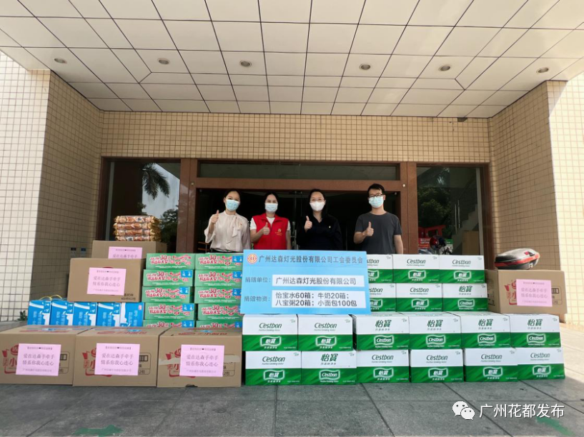 10月24日,广州达森灯光股份有限公司为花山镇政府捐赠一批防疫物资。