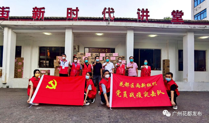 疫情发生后,花都区委组织部大力发动区内两新党组织支援一线防疫工作,两新党员积极响应,迅速冲向“疫”线、让党旗飘在“疫”区。全区500多家两新党组织,4000多名两新党员参与到疫情防控的核酸检测、流调、农产品分发和捐资捐物等工作中,成立两新组织党员战疫突击队20支,成立两新志愿服务队137支,分别协助192个村(社)区开展抗疫志愿服务。