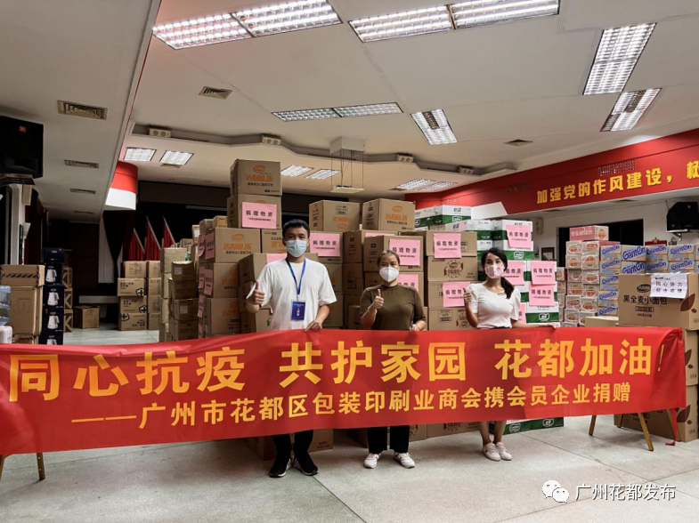10月21日,花都包装印刷业商会组织会员企业为新华街道捐赠物资一批,价值约11万元。