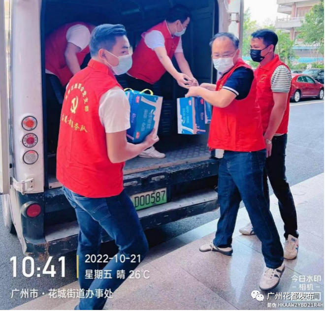 10月26日,花都区装饰建材协会员企业捐赠爱心物资支援花都区人民政府新雅街道办。