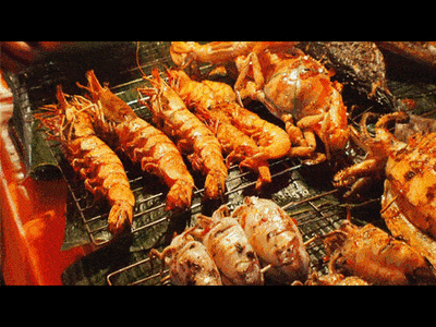 微风夹杂海鲜烧烤的味道沁入鼻息