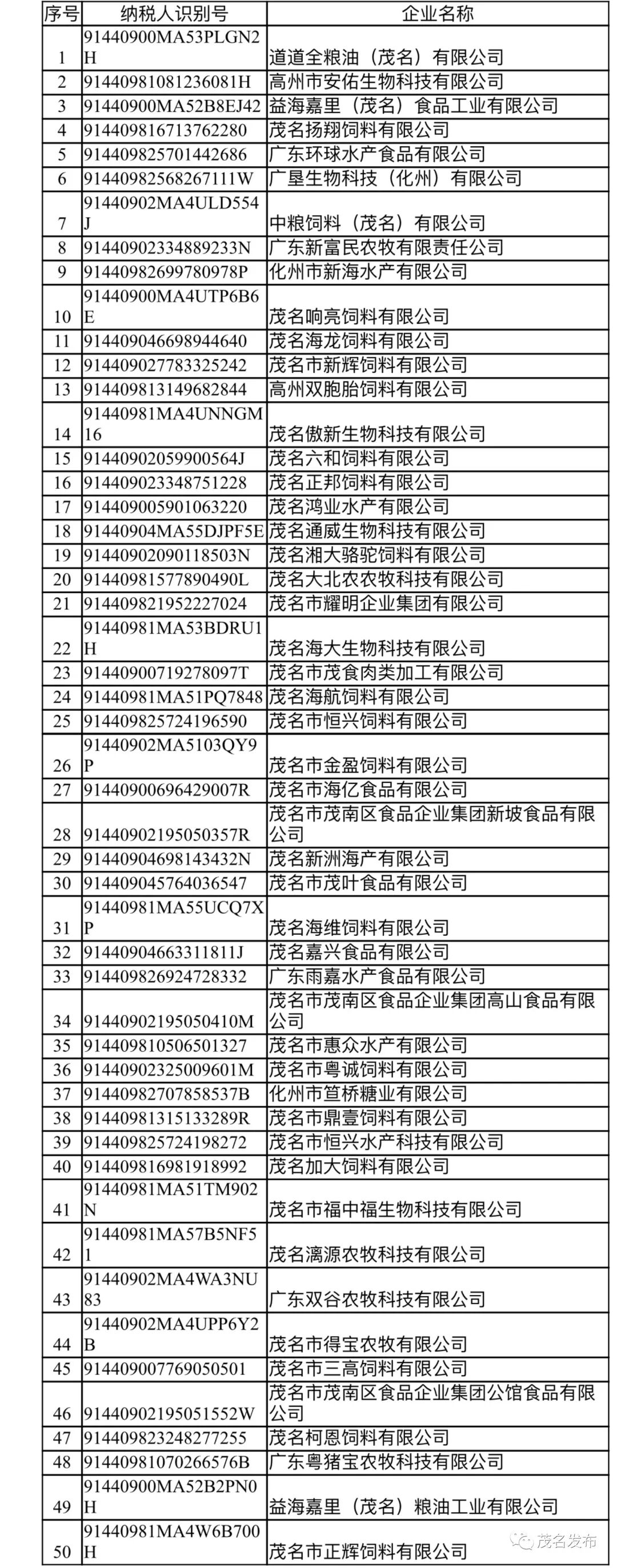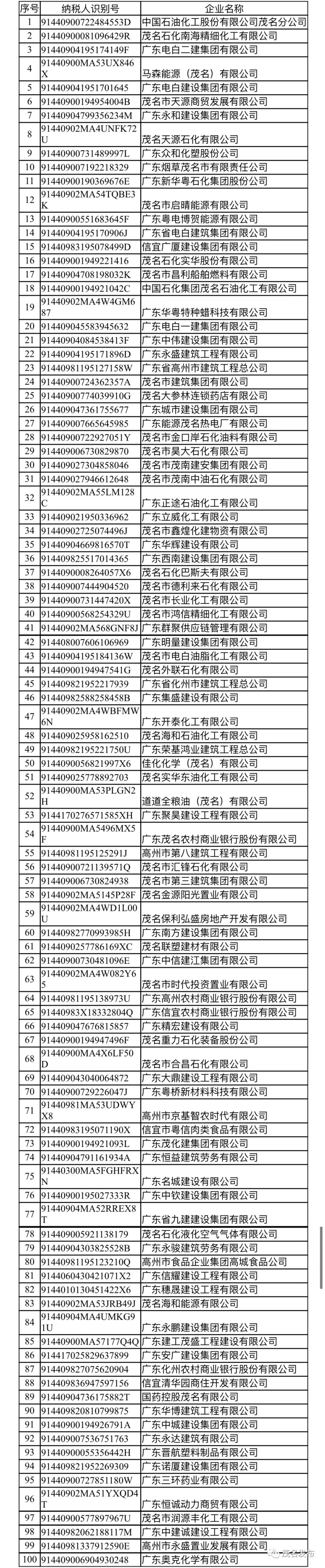 三、2022年度茂名民营企业纳税50强(按2022年度全市民营企业的纳税总额排序)