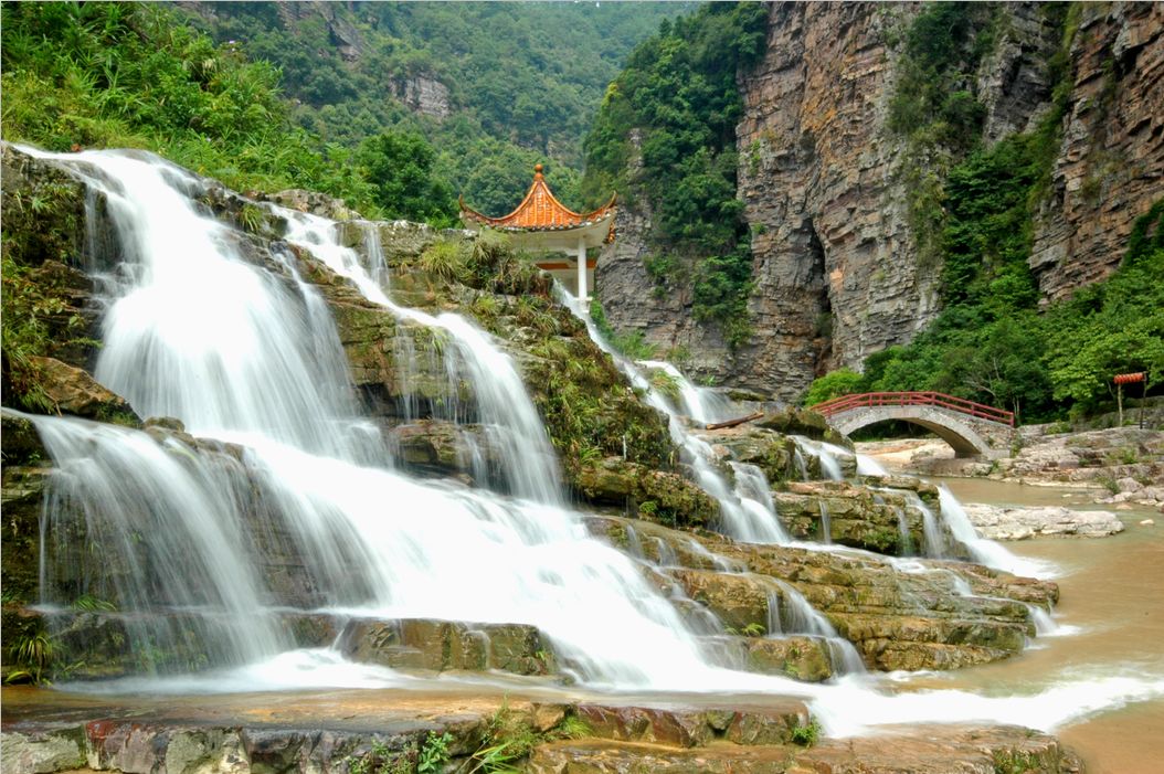 景区森林繁茂、瀑布飞流、奇石遍布,