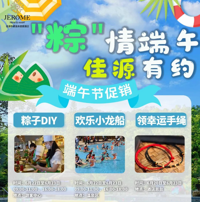 内容:恩平锦江温泉举办放“粽”一夏主题活动,届时将举办泼水狂欢节、亲子迷你“龙舟”比赛。