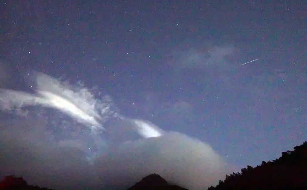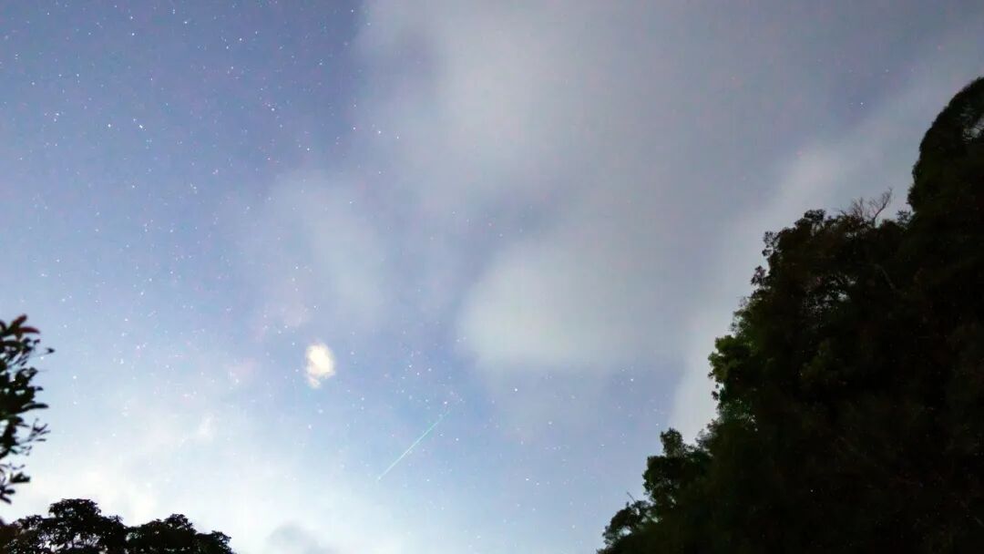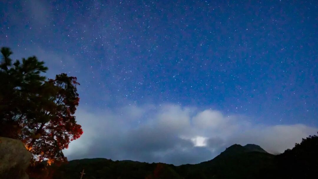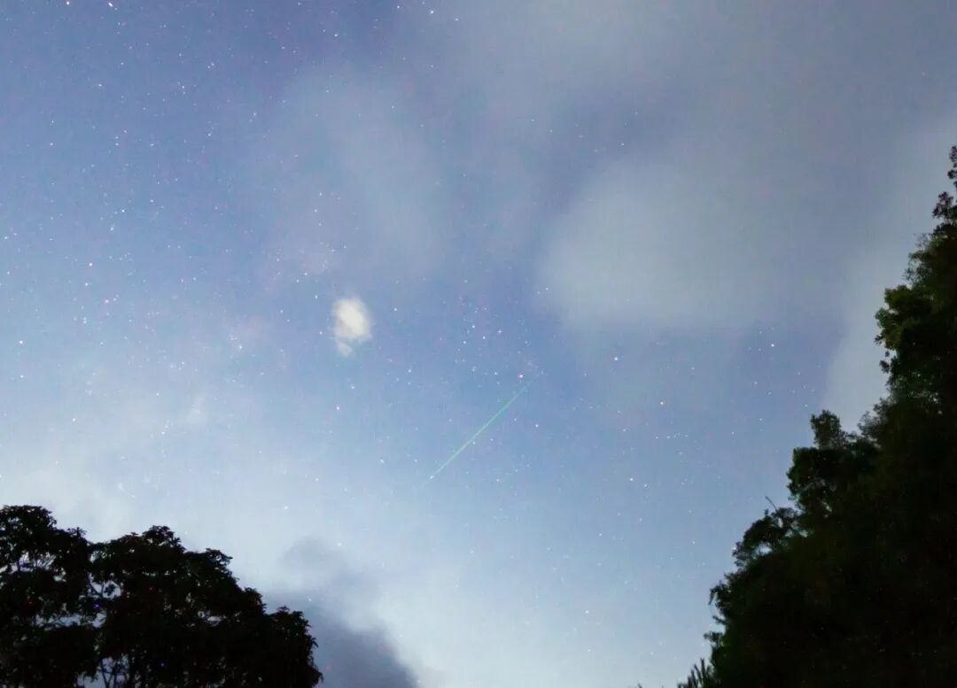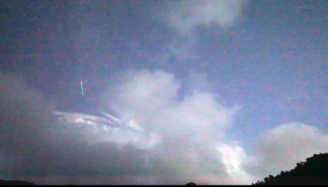 8月13日晚,记者在象头山上通过镜头实拍到流星雨划过夜空中的美景。