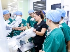 一场复杂的“外科手术”紧张而忙碌地进行着,医生在控制台小心翼翼地操作,远端的机械臂不停挥动……这是9月19日,中山大学附属第一医院南沙院区达芬奇手术机器人培训现场,美国加州大学戴维斯分校机器人外科主任Nejad教授与中国医生交流互动,频频点赞。