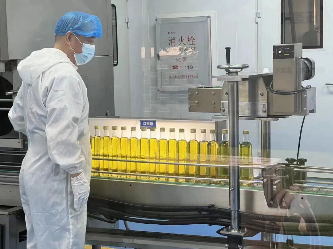 位于浈江区犁市镇油茶产业园加工车间内,通过古法压榨、精炼、过滤、灌装等程序产出的一瓶瓶金黄色茶油正排排站在生产线上等待质检、包装,随后拉出车间送到消费者手中……