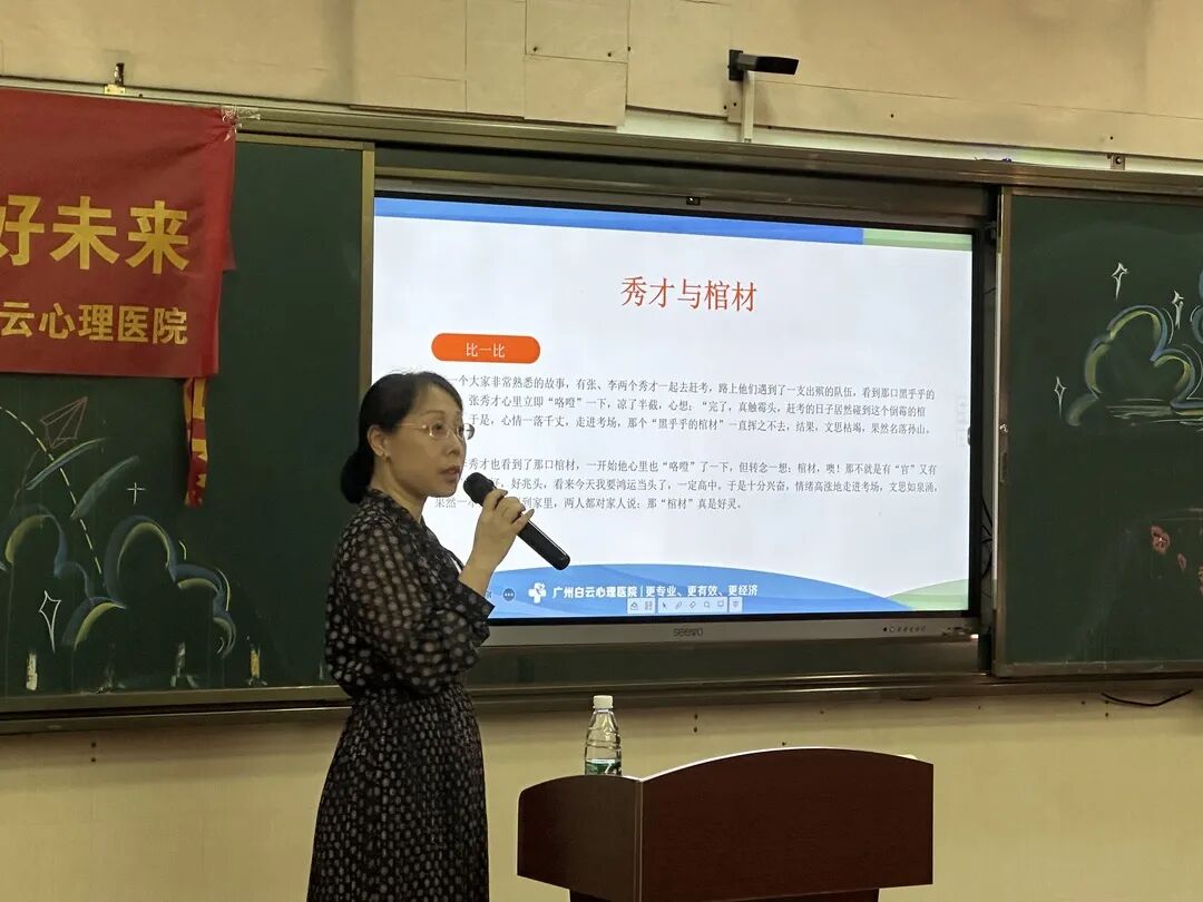 随后,梁老师通过“秀才与棺材”的典例深入浅出、形象生动地表现情绪与观念的密切联系,对同样一件事,人们会因所持的信念/观念不同而有不同的感受。要想积极地对待生活,应该改变自己的观念,使自己能够以乐观的态度去看待问题、思考问题,只有规避这些糟糕的信念,才能实现更好的心理调适。