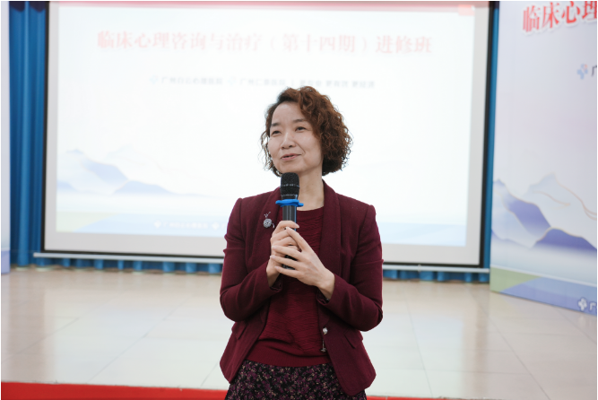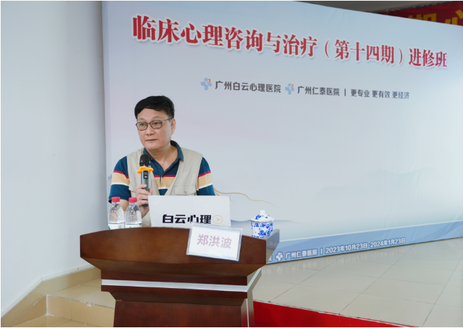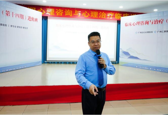 开班仪式上,广州白云心理医院执行院长胡誉怀发表了热情洋溢的致辞。他首先对全体学员表示热烈的欢迎,并对当前国民心理健康状况、服务状况以及心理咨询行业的现状和发展前景进行了全面而深入的阐述。他特别强调了心理咨询与心理治疗在现代社会中不可替代的重要性,以及临床进修班对于培养更多专业心理咨询人才的重要意义。他鼓励学员在进修班倾力学习,积淀知识储备,为更多的人提供专业的心理帮助和服务。