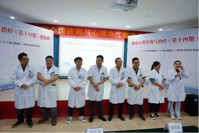 广州白云心理医院执行院长胡誉怀,名誉院长郑洪波教授,副院长罗爱民、曾莞勇,精神科专家郭沈昌教授,首席心理专家郁辉辉等领导专家以及各学科主任、带教医生、学员出席了本次开班仪式,仪式由心理咨询师庄晖主持。