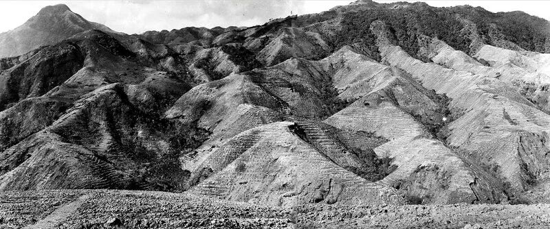 △昔日“黄土裸露、荒芜凋敝”的岳山林场。图源 西江日报