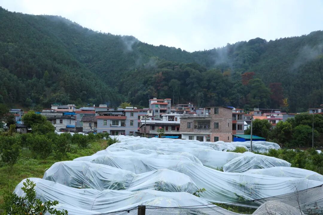 2023年12月18日,连山吉田镇旺南村的130亩脆皮金桔穿上了防寒“大衣”——保温膜。清远日报签约摄影师 黄琳雁 摄