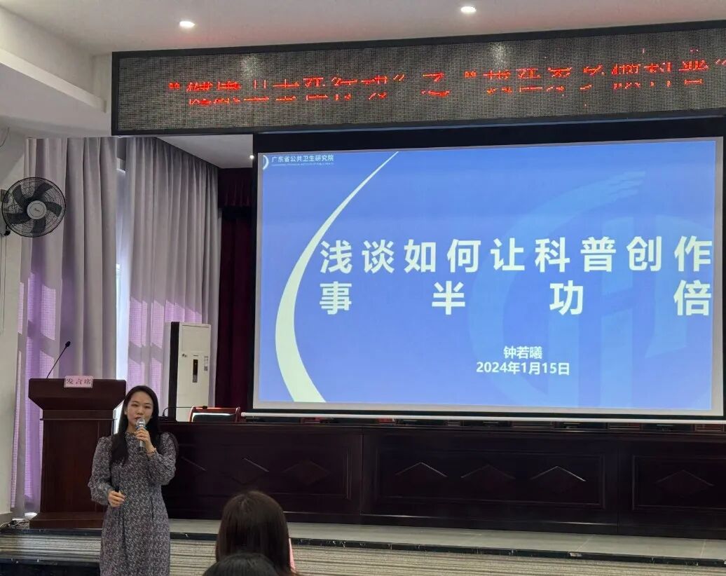 活动举行了“健康卫士在行动”之“我在家乡做科普”广东省“百千万工程”突击队授旗仪式。随后,“点赞·2022科普中国”年度科普人物提名奖获得者——钟若曦高级工程师为与会人员带来了主题为《浅谈如何让科普创作事半功倍》的精彩分享。
