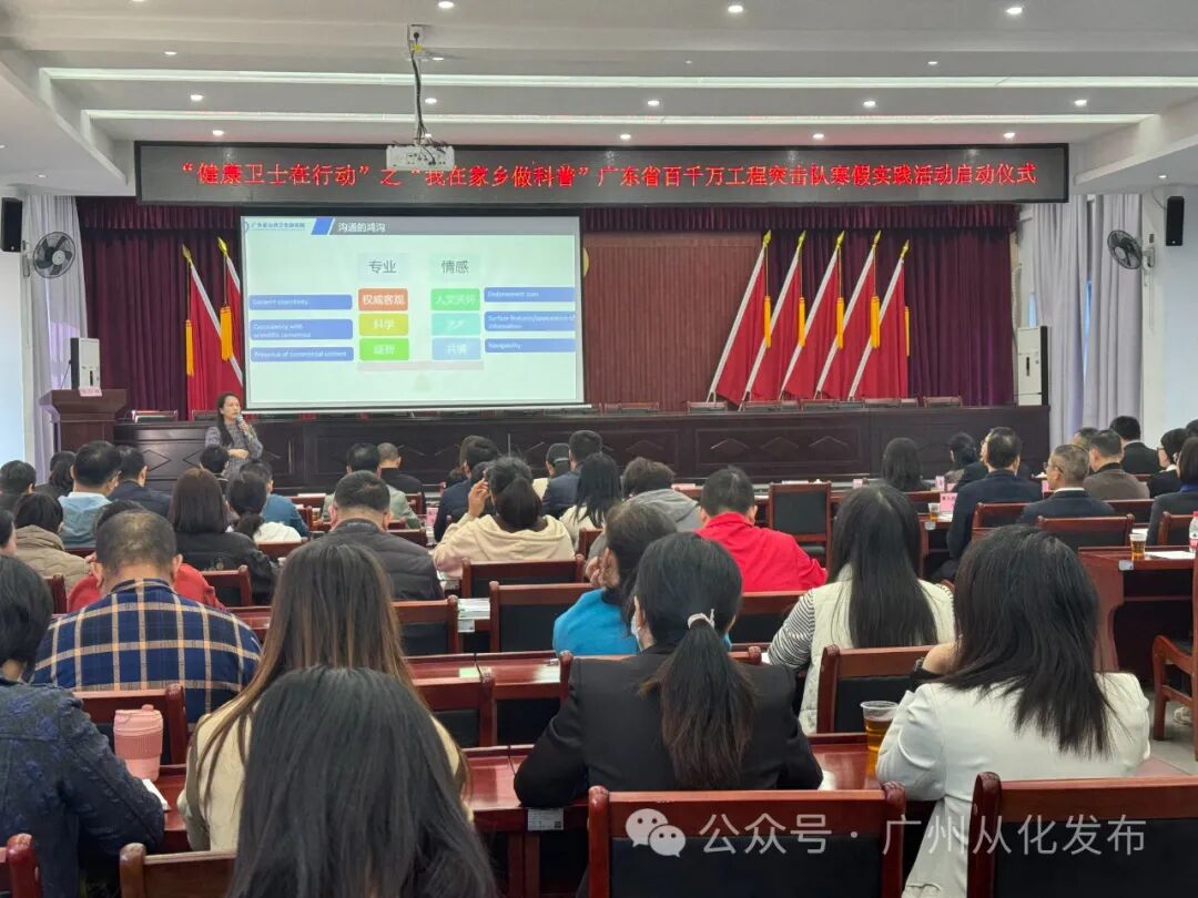 1月15日上午,2024年从化区“校地协作发展”实践基地项目活动——中山大学公共卫生学院“健康卫士在行动”之“我在家乡做科普”广东省“百千万工程”突击队寒假社会实践活动启动仪式在温泉镇人民政府礼堂举行。