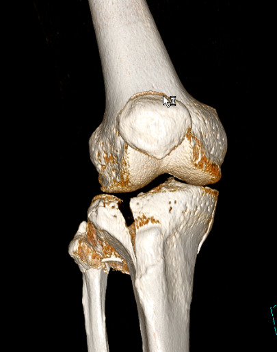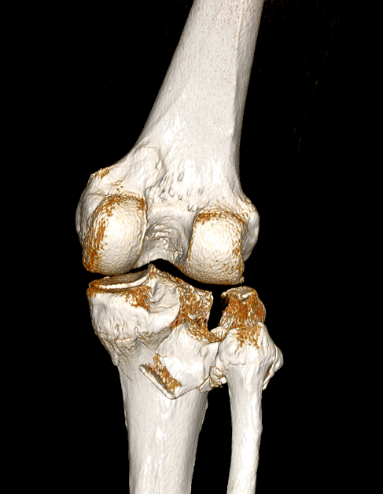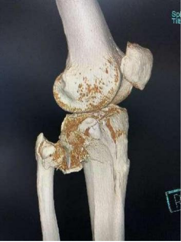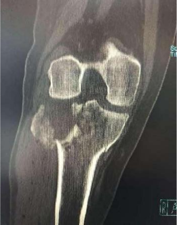 2、图3-6 术前CT见胫骨平台严重塌陷、劈裂