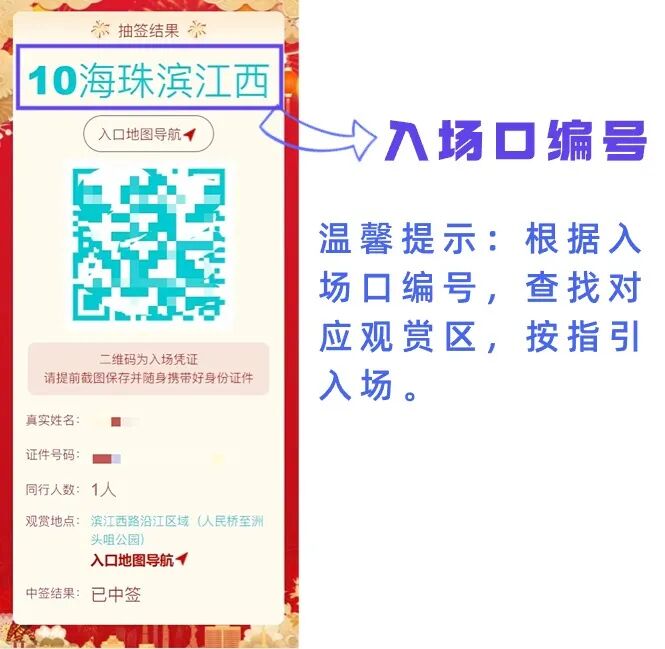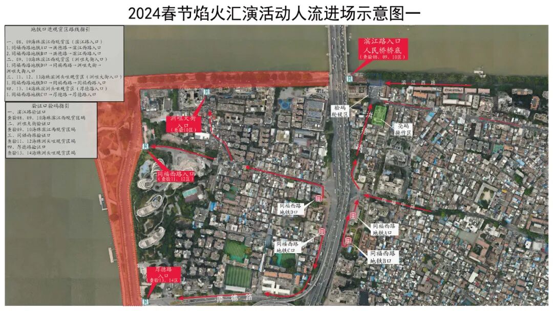 中签人员指引:可从芳村地铁站出站,分别经上涌直街(长堤路)、陆居路按照指引进入观看区。