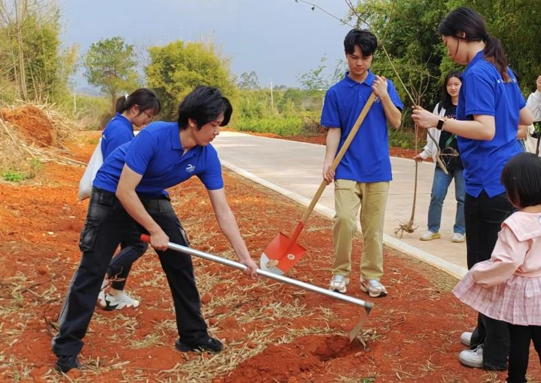 春风吐绿、草木初萌。同学们挥锹铲土、扶树填坑、踏土夯苗,以实际行动建设美好乡村,为绿美始兴再添新绿。